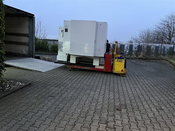 IN-OUT-INHightech Erodiermaschinen werden heute in luftgefederten klimatisierten Fahrzeugen ohne Umverpackung angeliefert, das erspart Verpackung und schont somit unsere Umwelt. Nach einer Stunde stand die Maschine an Ort und Stelle.